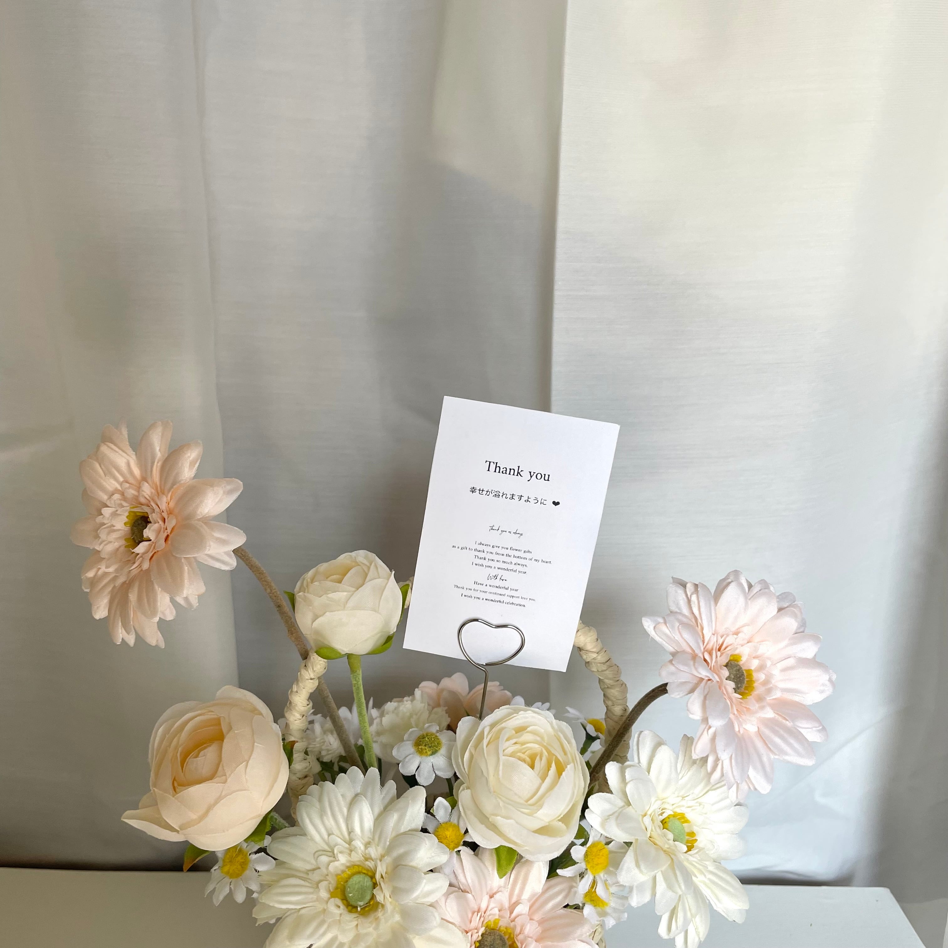 ガーベラをメインに、ラナンキュラスやマトリカリアなど、たくさんのお花を使用しました。